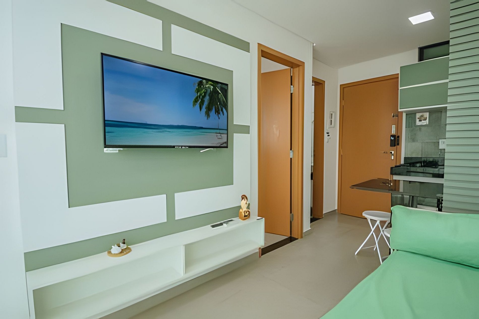 Flat com capacidade para 4 pessoas em condomínio fechado, com duas piscinas no rooftop; Localizado a 10 metros da praia de Maracaípe e a 3 minutos de carro do centrinho de Porto de Galinhas; Flat, com cozinha totalmente equipado, sala, banheiro e um quarto independente com ar- condicionado, cama de casal, e TV smart, sala com sofá - cama , ar - condicionado, TV smart e Wi-Fi ; Cozinha equipada com geladeira, microondas, fogão, forno elétrico, liquidificador, cafeteira, sanduícheira e todos os utensílios de cozinha como panelas pratos e talheres;