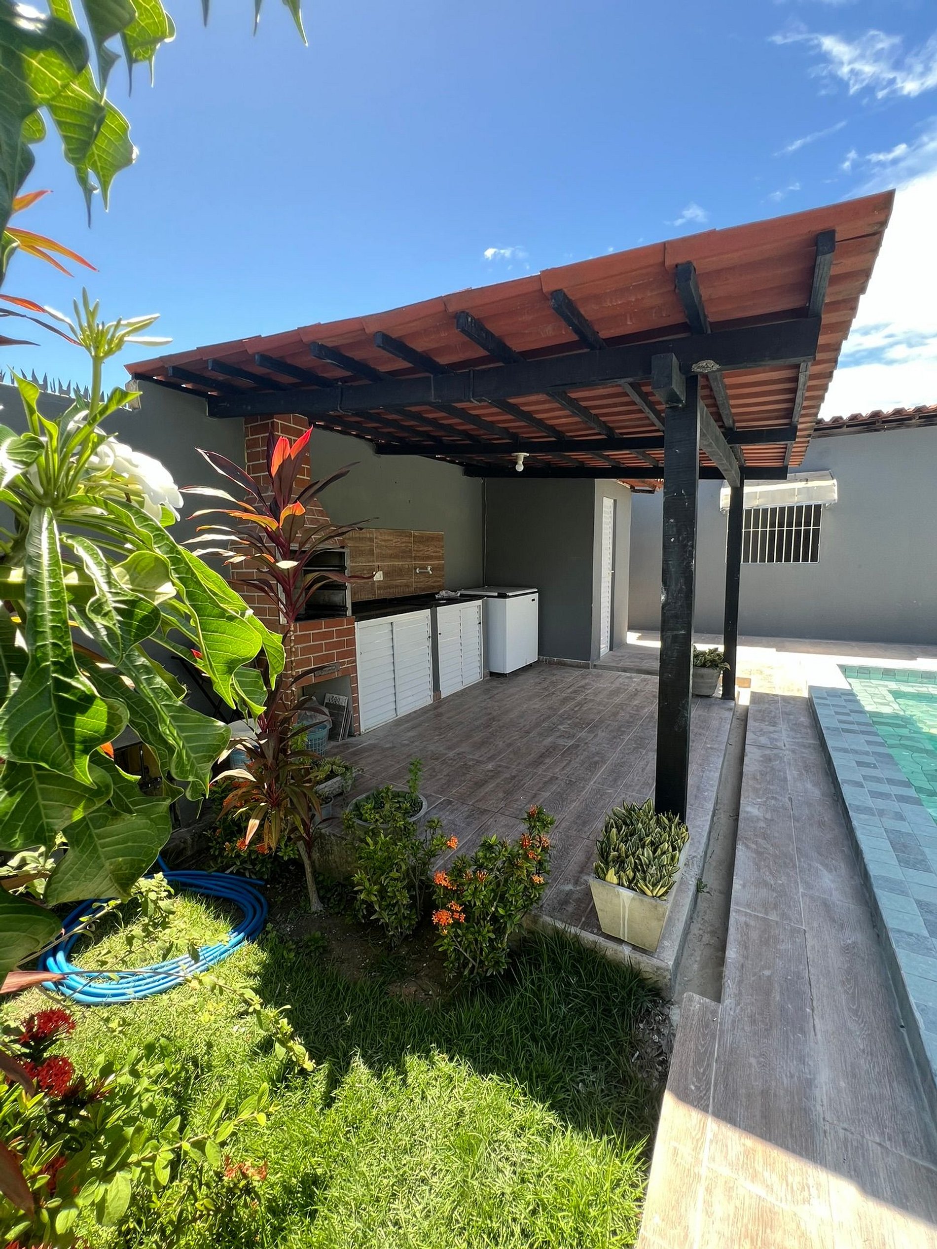 Aqui você desfruta de uma área externa com Piscina, Churrasqueira, um banheiro, estacionamento privativo, área verde, na casa tem 4 quartos, sendo 3 suítes, cozinha toda equipada, 1 banheiro social, sala, área de serviço e muito mais.
