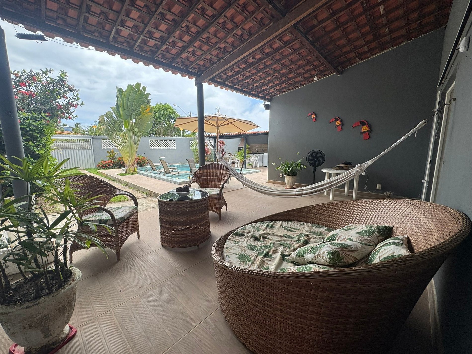 Casa com capacidade para 12 pessoas como muro e cerca elétrica, além de câmeras de segurança na área externa da casa , com piscinas em dois níveis, para adulto e crianças; Localizado a 300 metros da praia; A casa, com cozinha totalmente equipado, sala, banheiro, com ar- condicionado em todos os quartos, cama de casal, e TV smart, sofá e Wi-Fi ; Cozinha equipada com geladeira, airfry, micro-ondas, fogão, forno elétrico, liquidificador, cafeteira, sanduicheira e todos os utensílios de cozinha como panelas pratos e talheres;